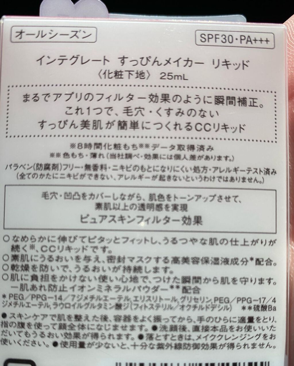 資生堂ジャパン様より、こちら1つで毛穴・くすみのない“すっぴん美肌”が簡単につくれるCCリキッドをお試しさせて頂きました。**********************インテグレートすっぴんメイカーCCリキッド25ml1,540円(税込)***...
