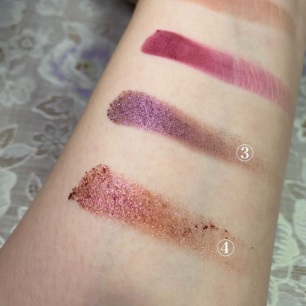 バレンタインボックスはめちゃめちゃツヤ感やラメ感が可愛い💕 使いやすいカラバリだからデイリー使いしやすくておすすめ◎ ②のブラウンが程よいピンク味がある上品なカラーでツヤ感がめちゃめちゃキレイ✨ ④のピンクシャドウを涙袋に入れるとぷっくりしてどこか色っぽい目元になる! リップはレッドブラウン💋 このレッドブラウンめちゃめちゃ可愛すぎてやばい😍 ふわっと系のマットだから使いやすいし すごい色っぽい唇に仕上がる💋