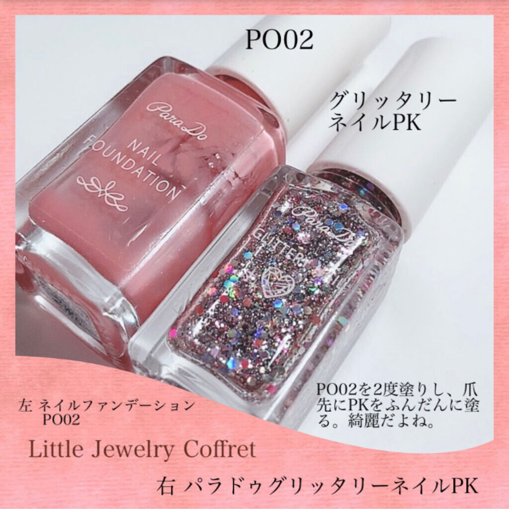 - SNSで人気の商品です! 「リトルジュエリーコフレ」は、パラドゥ史上最高級の輝きで、まばゆいほどのきらめきを演出するネイルカラー。 ワンシーズン使い切りのミニサイズで、ご自宅でセルフネイルを楽しむ方にもお勧めです。 「リトルジュエリーコフレ」のテーマは、「Marie’s Collection」(マリーズコレクション)」。 宝石をこよなく愛し、また宝石にも愛された女性、マリー・アントワネット王妃を魅了した宝石の輝きにインスパイ アされた、色とりどりのきらめきをギュッと詰め込んだ、極上のラメカラーセットです。 キラキラと存在感を放ちながら、美しさが溢れ出るような指先。まばゆく輝く宝石を思わせる3 色は、彩り豊かなラ メをひときわ贅沢に配合した特別仕様です。 光を受けて、うっとりするような輝きがゆらめき、手を動かすたびに、心が躍る。 指先に極上のきらめきが、この夏を華やかに演出します。