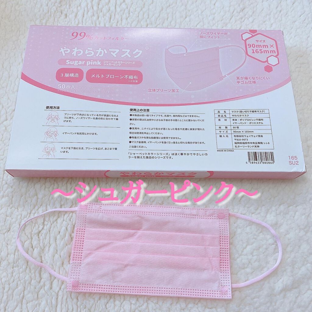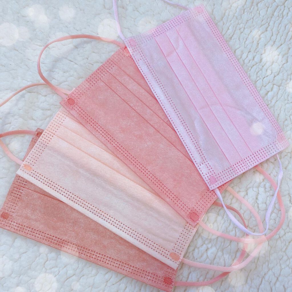 マスクくらいおしゃれに気分に合わせて変えたいなといつも色んなピンクのマスクを買っています!! このマスクはずっと愛用しているもので、耳も痛くならないし、一般的な大人用サイズ(横幅17.5㎝)より少しだけ小さいサイズで、私はちょうどいいです! 平ゴムなので、耳が痛くならないので長時間でも付けていられます! 今回は、チェリーブロッサム、オールドローズ、ヘーゼルナッツ、ベビーピンクの4種類を買いました✨✨ 不織布のマスクがやはり1番安心するので、私はマスク時代になってからもずっと不織布のマスクを使ってます😷 私はこのマスクで色々な色をつけながらマスク生活を少しでもプラスに思えるように使っています✨✨