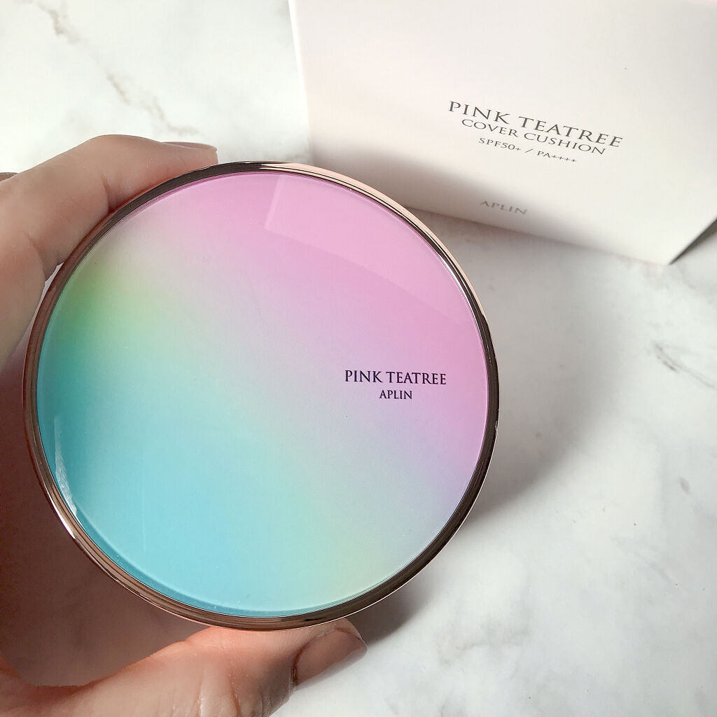 APLIN ピンクティーツリーカバークッション 21号ライトベージュ 2,490円(税込) 少量でよく伸びてハイカバー! 赤みやくすみをしっかりカバ一できるのに、厚塗り感のないなめらかな仕上がり♡ ハイカバーなのにナチュラルなツヤ感とサラッとしつつ、乾燥崩れしにくい仕上がりに感動します!!