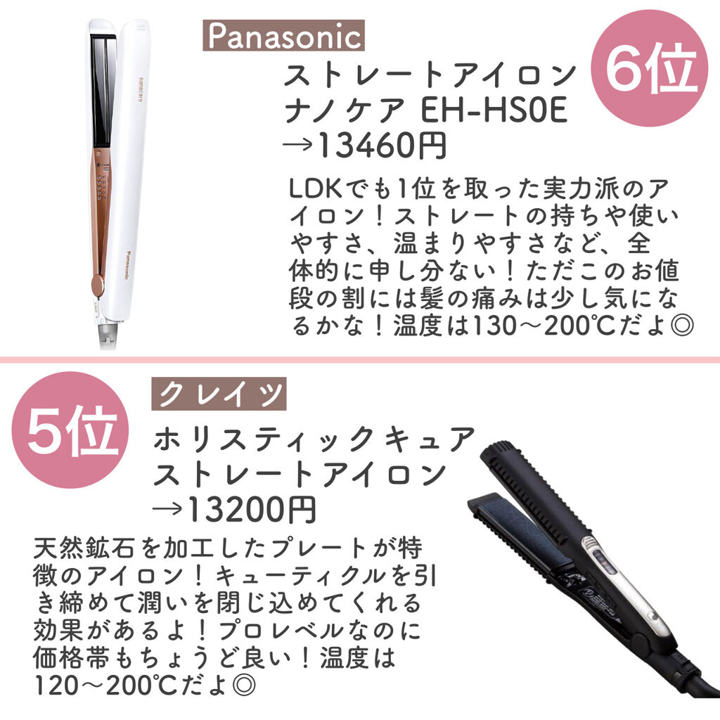 | ヘアアイロンランキング第70位 | 一番低い温度でも自然なストレートになって、バリバリ感もそんなに感じず✨ | 詳細を見る |