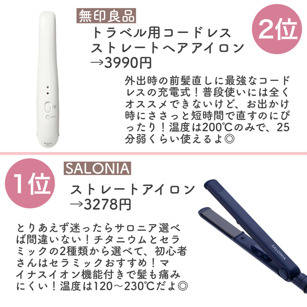 コメント失礼します❕ いつも拝見させて頂いてます👀 サンキューマートのミニアイロン持ってるんですが、前髪用に使ってて前髪だけだったら良きです😳🤍 この中にはないんですが、SALONIAの35mmのアイロン、めちゃめちゃ良いです🥰💕 いつも応援してます❕頑張ってください✨
