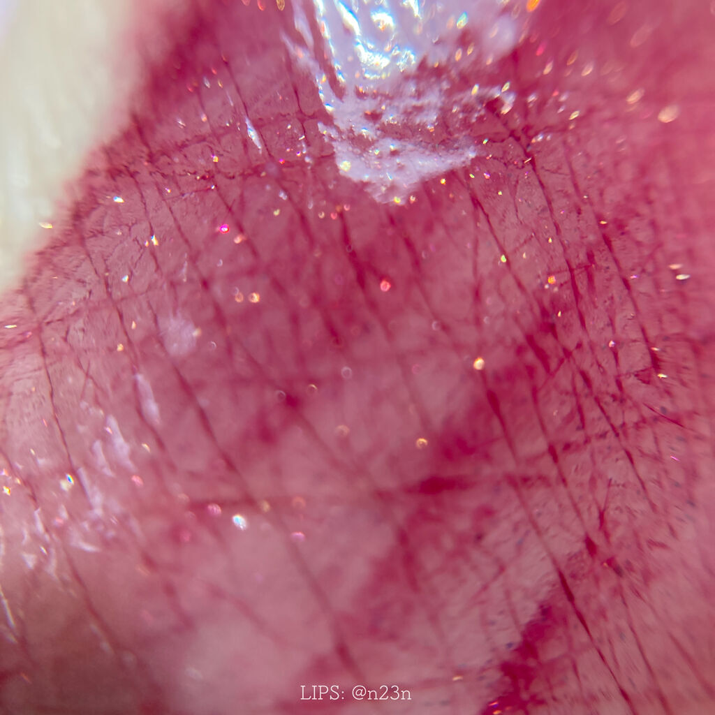 ラメがめちゃくちゃ可愛いA’pieuのジューシーパン スパークリングティント。BE01のときめくイチジクはベースがベージュ系のナチュラルカラーでゴールドやホワイト系のラメが入っています! 普段から濃いめのリップが好きな方は物足りないと感じると思うので、こちらを全体的に塗った上に内側に濃いめのリップ塗ってもとても可愛く仕上がります🫶🏻 ティント効果もあって、ティッシュオフするとツヤ感は失われるものの色とラメはしっかり残ります!
