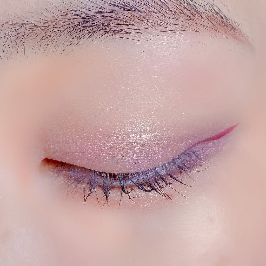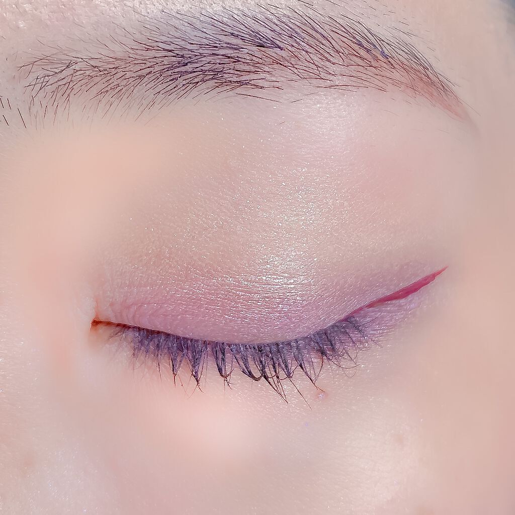 ベースに右上、目頭から黒目上に真ん中、黒目〜目尻に右下を、左上を目頭にくの字に塗ってもらいました✨ ピンクサクラよりもクールな感じで、目で見た色より私の肌では紫っぽく発色しました😍 上2つはラメはぎっしりでときめく💓 ブラウンメイクがとても苦手だけれどこれならブラウンメイク出来そう👌(かなり紫寄りですが) くすみ感は強いので苦手な方は厳しいかも…(特に真ん中) クールな印象になるので大人顔さん向けor大人顔になりたい方向けのイメージです✨