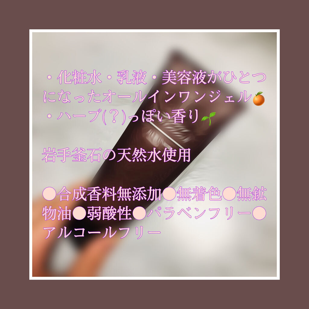 - 岩手県釜石の天然水を使用したスキンケアシリーズです。化粧水・乳液・美容液がひとつになった保湿ジェルで、洗顔後のお手入れが簡単にできます。ざくろ、木苺、ローズなど10種の天然美肌成分と、ヒアルロン酸、コラーゲンなど5種の機能成分を配合しました。・無香料・無着色・無鉱物油・弱酸性・アルコールフリー ◎ご使用方法:洗顔の後、適量(さくらんぼ粒大)を手のひらにとり、顔全体になじませてください。化粧水のお手入れの後、美容液として使うこともできます。