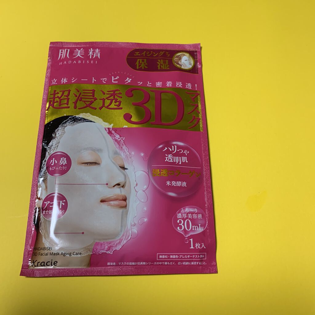 顔の凹凸にピッタリフィット!!立体形状マスク✨✨肌美精 超浸透3Dマスクエイジングケアとろみのある濃厚美容液がたっぷり30ml浸透した保湿効果の高いシートマスクです!かなりしっとりもちもちのお肌になれました♪翌朝まで潤いが続くのを実感🥹🥹あご...
