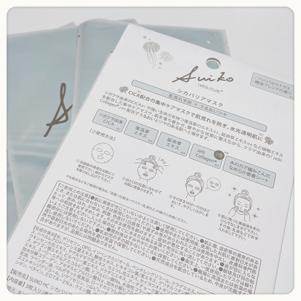 シートマスク・商品名SUIKOHATSUCURE(スイコウハツキュア)シカバリアマスク3枚入り・値段定価1100円(728円で購入)・購入場所マツキヨ・評価★★☆☆☆合わないわけではないけどそこまで好みじゃなかったかなシートの切り込み多めでも...