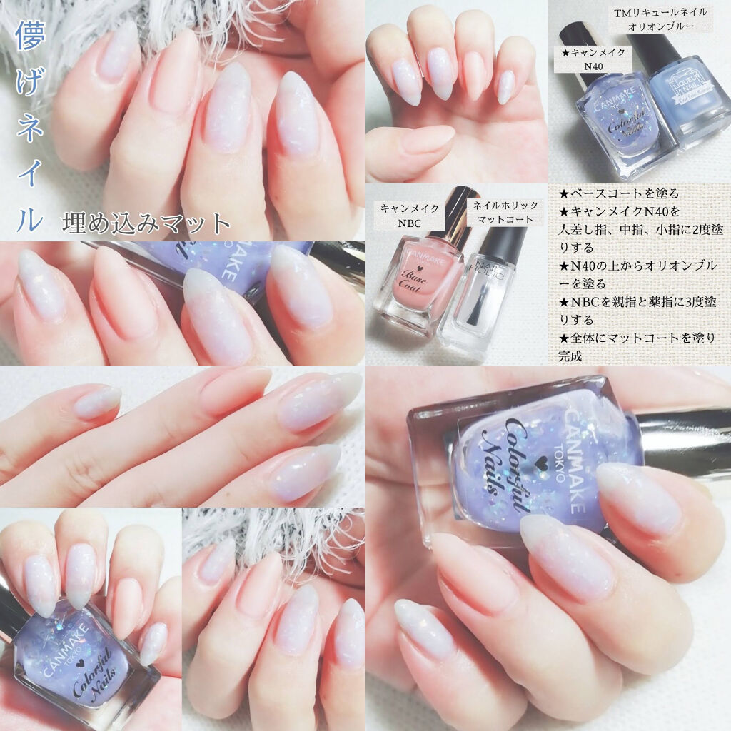 CANMAKEのオールスター揃いで、ナチュラルなデートネイルにしたよ♡今日は相方の母とデート❤そんな時はふんわりやさしいカラーと少しのオシャレ感出したいっ!!グラデーションは手が込んでる風が出せるので、簡単に手早く出来るファンデーションカラー...