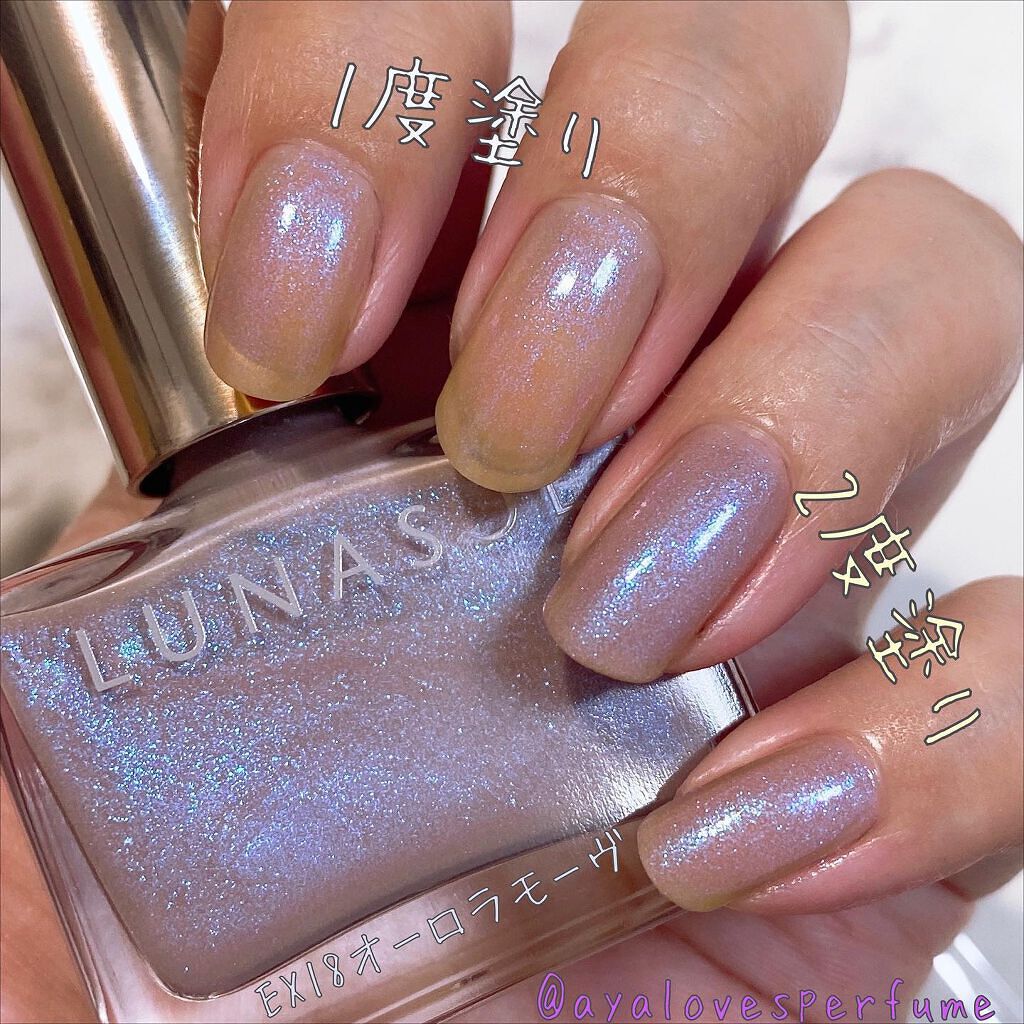 ルナソルホリデー限定ネイルEX18オーロラモーヴ青ラメが尊すぎるけど、ベースのモーヴカラーも肌に溶け込む馴染みの良いモーヴでとにかく非の打ちどころのない素晴らしいポリッシュです#私のベストコスメ2021#大優勝ラメ#LUNASOL#ネイルポリ...