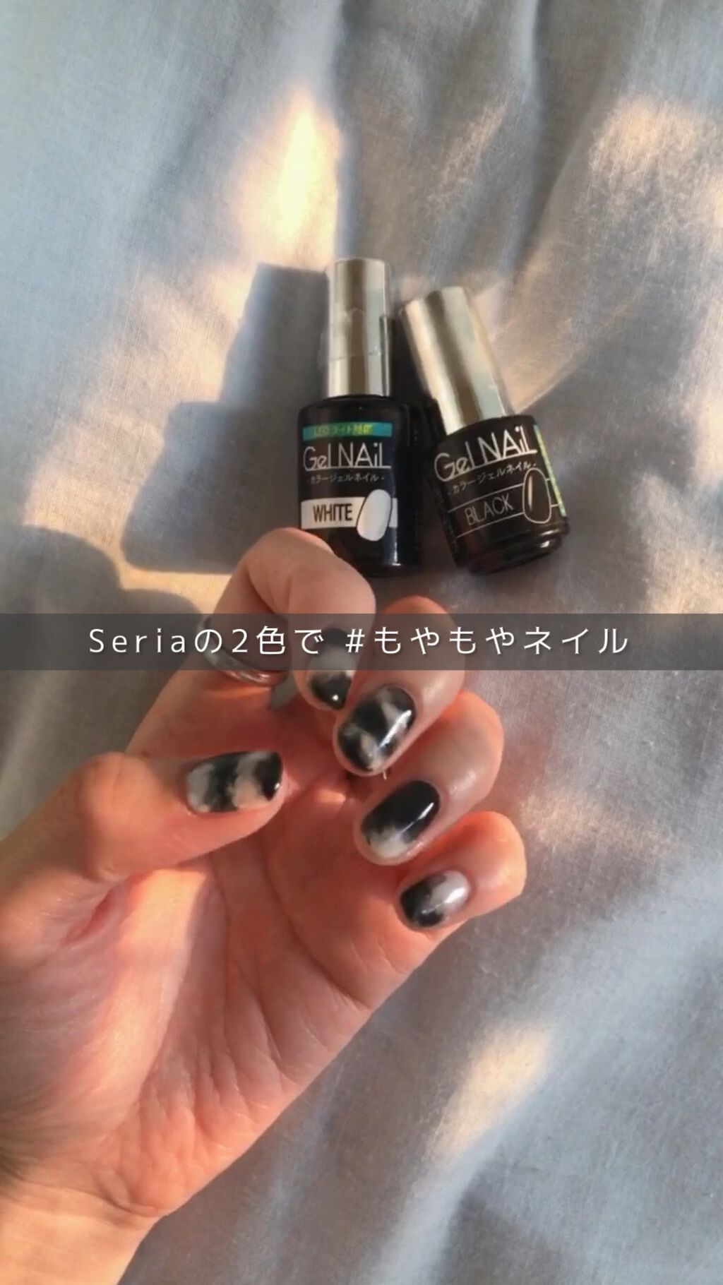 Seriaの2色♥秋にも◎な大人キラキラネイル𓂃♪【使った商品】Seria/gel:lightbeige,glittersilver【手順】1.ベースコート2.ライトベージュ2度塗り3.センター縦ラインでglitter2度塗り4.トップコート...
