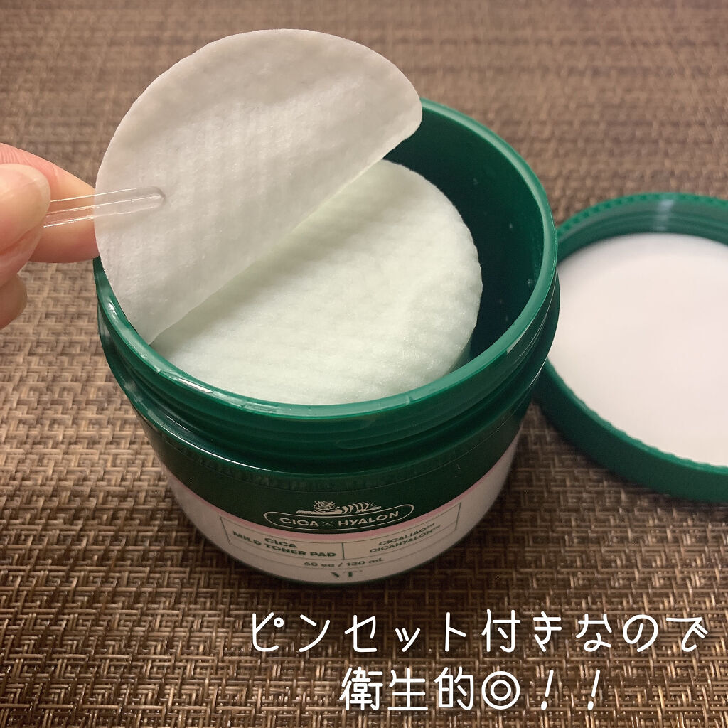 - <CICA マイルドトナーパッド> 水、グリセリン、BG、サリチル酸、ツボクサエキス、ヒアルロン酸Na、アシアチコシド、マデカッソシド、マデカシン酸、アシアチン酸、プロポリスエキス、ホソバニンジンエキス、ハマメリス葉エキス、セイヨウシロヤナギ樹皮エキス、アラントイン、β-グルカン、トロメタミン、コハク酸ジエトキシエチル、クロルフェネシン、ラウリン酸ポリグリセリル-10、ミリスチン酸ポリグリセリル-10、エチルヘキシルグリセリン、デキストリン、クチナシ果実エキス、EDTA-2Na、トコフェロール、プロパンジオール、ベタイン、グリチルリチン酸2K、香料、1,2 -ヘキサンジオール
