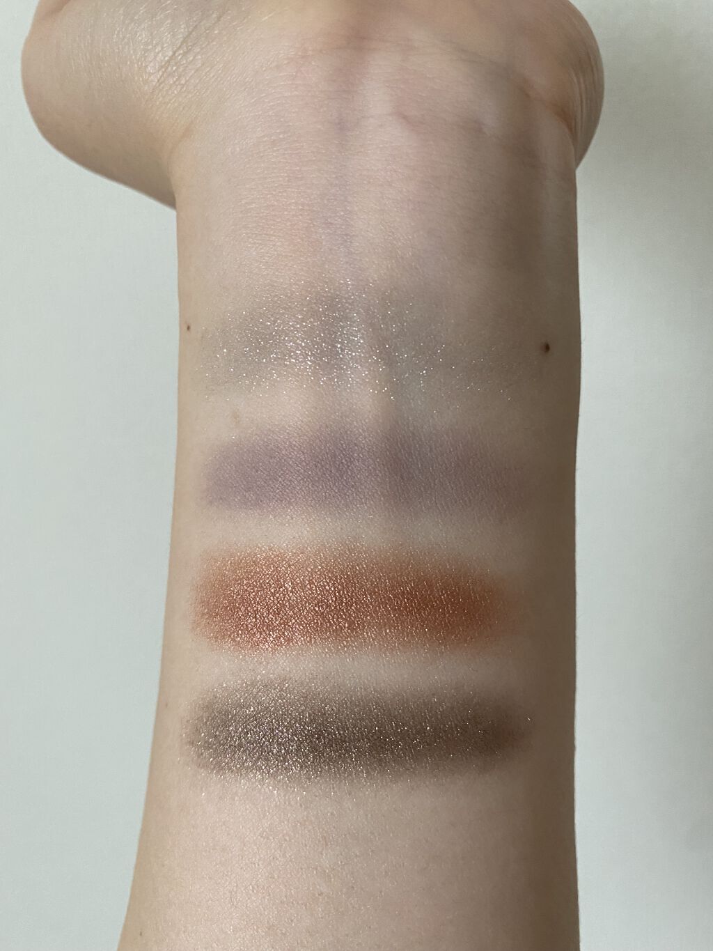 日本ではSUQQU公式オンラインショップでの販売に先駆けて、阪急うめだ本店とHANKYU BEAUTY ONLINEでのみ発売された限定カラー トーン抑えめのカラーで一見地味な印象なパレットですが、実物の煌めきはホリデーシーズンにぴったり✨ 特に1番ダークな締め色は多色ラメでベースがダークだから煌めきが映える〜❤️