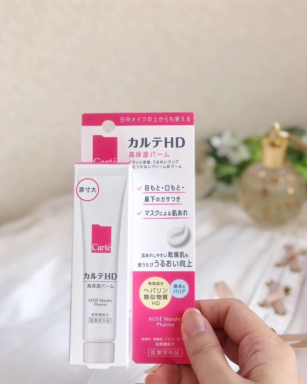 - 【高保湿バーム】 みずみずしくなめらかにのびて、ピタッと密着、うるおいラップ!どこでもうるおいを補給&密封する、携帯にも便利な高保湿バームです。 2つの有効成分ヘパリン類似物質HD※、グリチルリチン酸ジカリウムに加えて、密着&密封力に優れるワセリンやペースト油をシリーズ最大量配合。日中の乾燥やダメージから肌を守り、肌あれも未然に防ぎます。 高い保湿力と保護効果がありながらベタつかず、メイクの上から使ってもよれにくいテクスチャー、外出先でも適量が出しやすい細身チューブ。こだわり抜いた設計で、どこでも素早くうるおい密封し、いつでもしっとりなめからな肌に導きます。 朝のメイク前に、日中の乾燥に、マスクあれの予防に。あらゆるシーンの乾燥におすすめのバームです。 ※ヘパリン類似物質のこと <販売名:HDバーム>