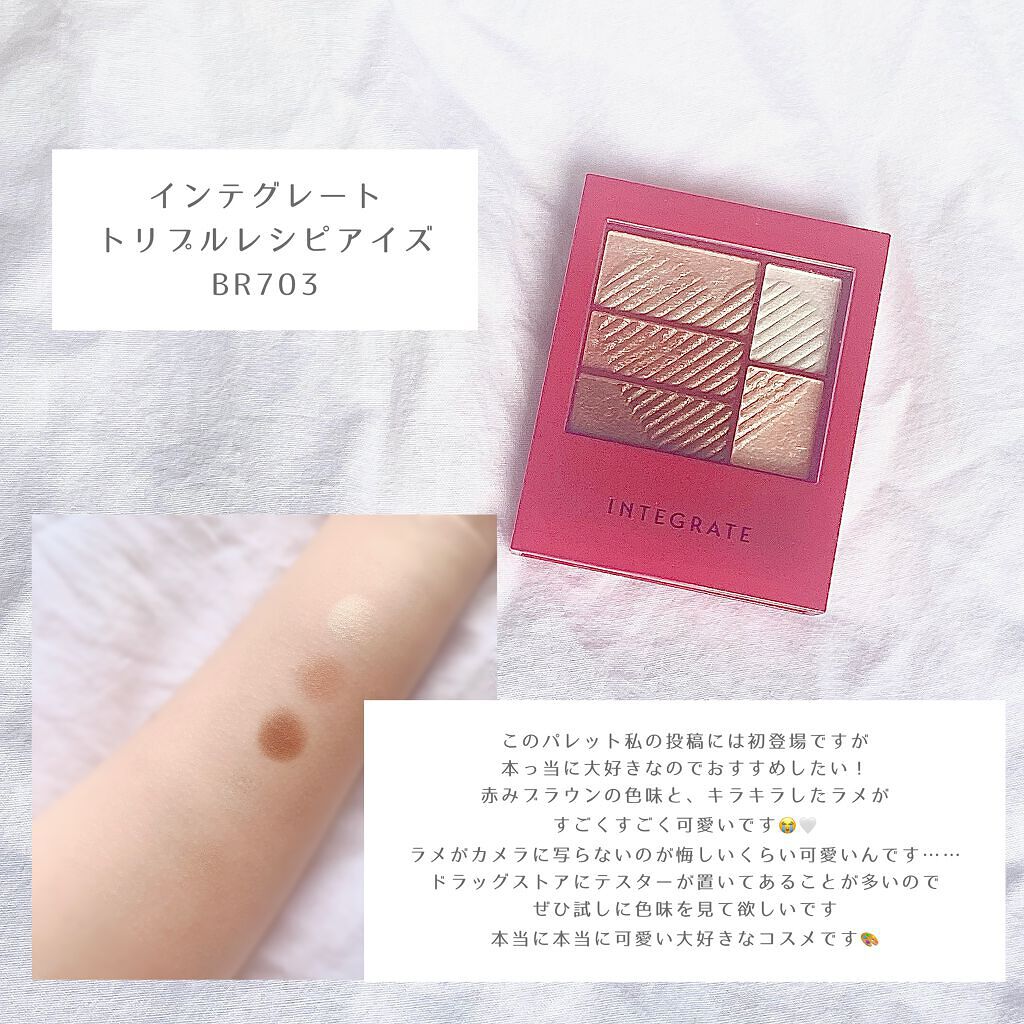 ドンキ購入品インテグレートがお安くなってた💓インテグレートワイドルックアイズWT974ラメかわいい💓トリプルレシピアイズBR703OR707PK7043つも安いから買ってしまった~💦すっぴんメイカーチーク&リップPK322 ヌーディーチェリー...