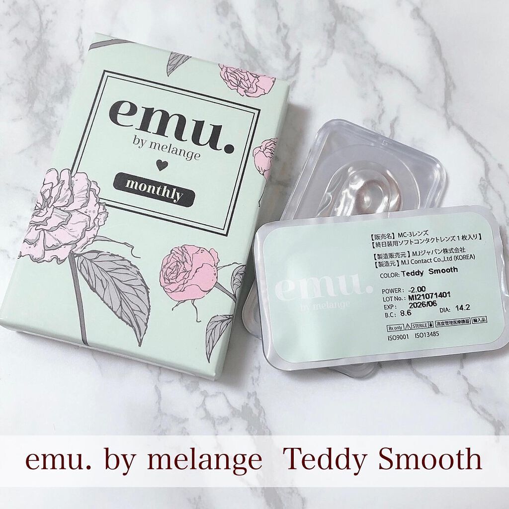 □emu.bymelange(キャンディボム).DIA14.2mm着色直径13.6mmBC8.6mm含水率38%装着期間1month内容1箱2枚入り.5月下旬に新発売となるemu.bymelangeをお試しさせていただきました🐶❤️新ブランド...