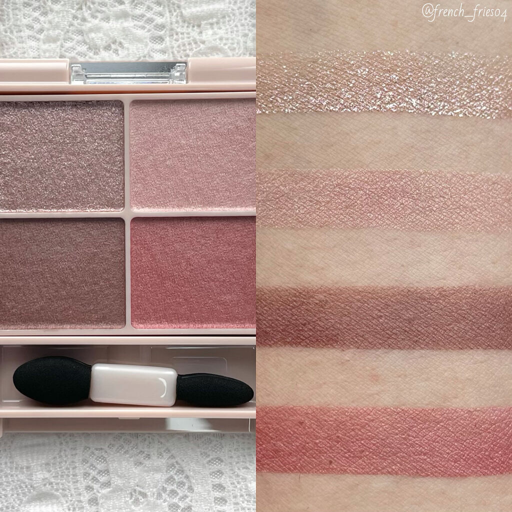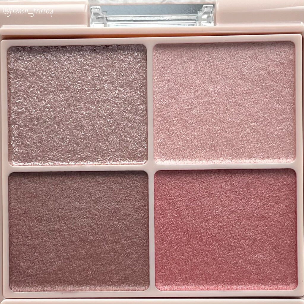- シルキースフレアイズの姉妹品♡ 肌に溶け込むような透けマットシャドウ 透け感のある柔らかい仕上がりになるマット3色と、透け発色の繊細ラメ1色のパレットシャドウ♡ 完全マットアイや、ラメ×マットアイなど、メイクのパターンを楽しみましょう!