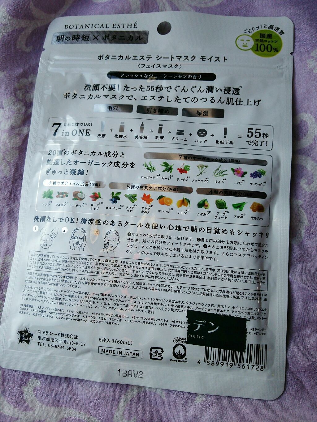 商品詳細情報BOTANICAL ESTHE シートマスク モイスト