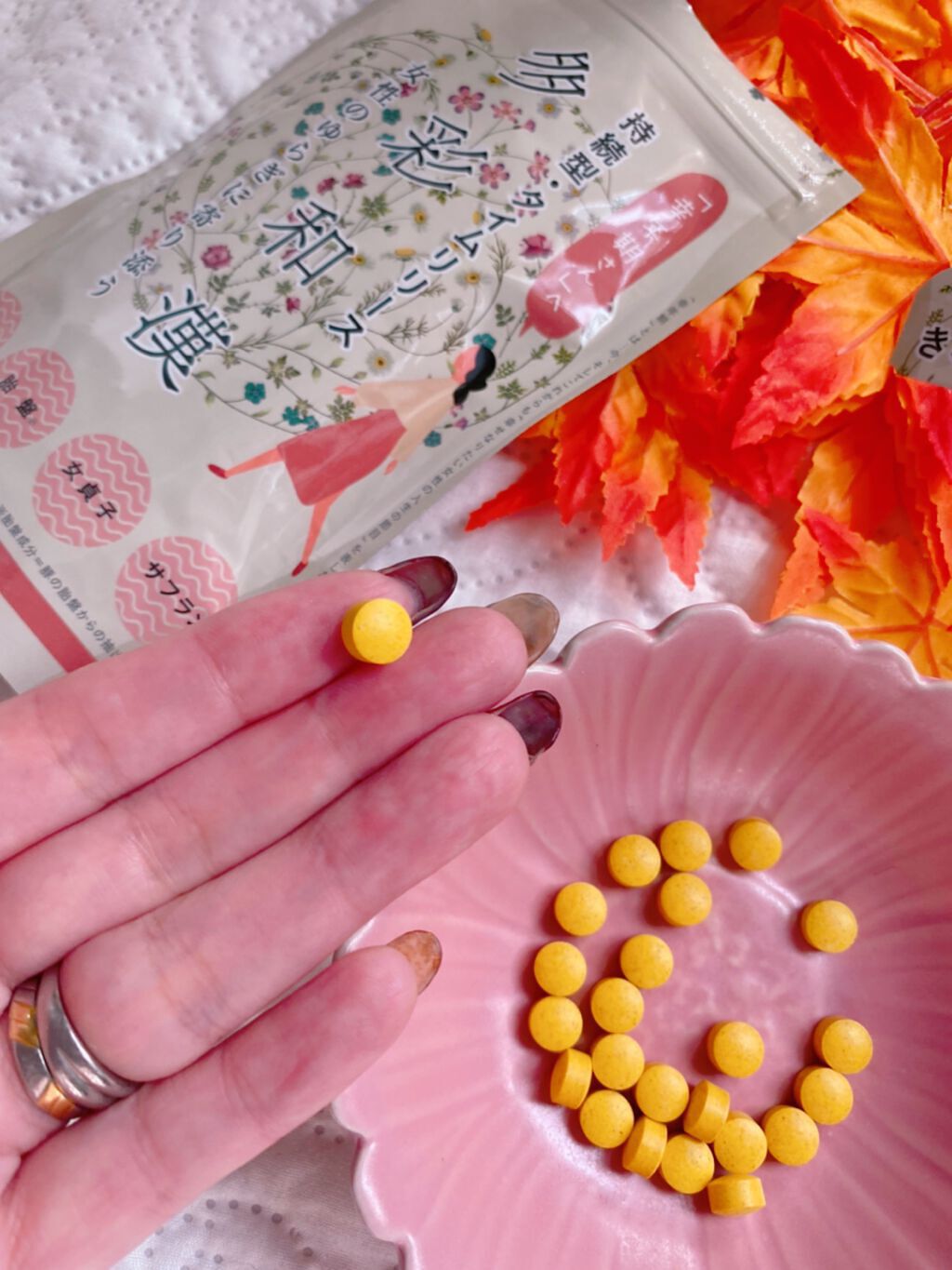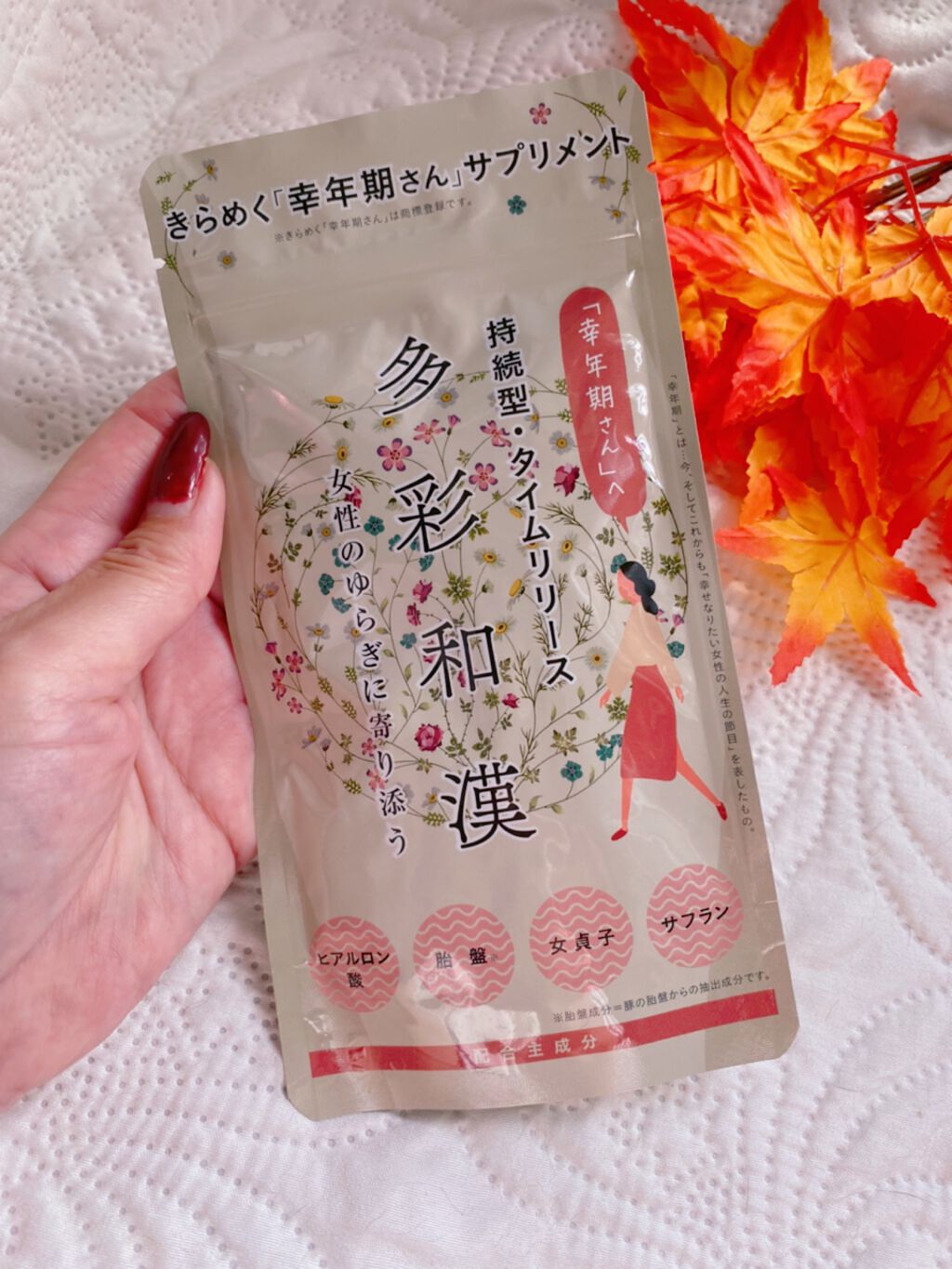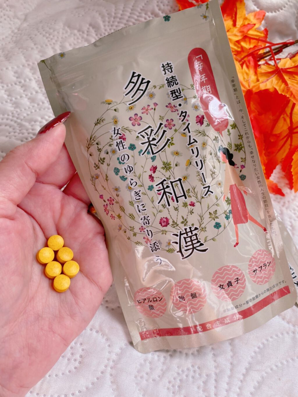 「更年期」を「幸年期」に変えるサプリメントの 「多彩和漢」 ヒアルロン酸、胎盤、女貞子にサフランと女性特有のゆらぎに着目し、配合されたサプリメントです。 サフランの鮮やかな黄色い小粒の錠剤で、飲みやすいです。 なんでもないのに、イライラしたり、焦ったり。前より汗がかきやすい、汗の量が増えた。冷えを感じるなど更年期に起こることが増えた方、多彩和漢信号です。 続けやすいサプリメントで、幸年期を穏やかに過ごしたいですね。
