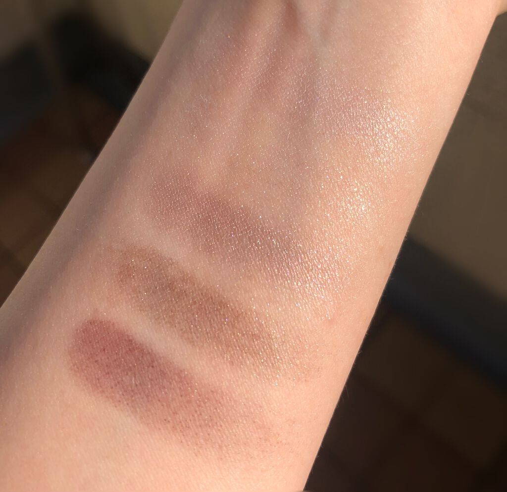 実際につけるとパレット上で見るより薄づきで優しい印象になります。 ちょうど良い華やかさで肌が明るく見えます! 粉質もラメ質も上品でさすがルナソル! 4色とも可愛い💓 ぜひ使ってみてほしいです😍