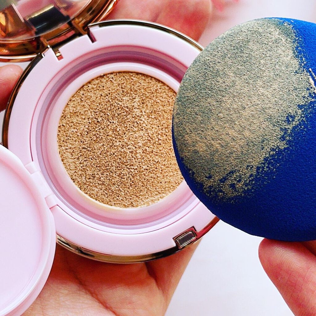ふわふわしてて高級感がありますねっ(*'▽') 薄めの、持ちやすいスポンジです。 ファンデーションを選ぶときは比較的白いほうを選びますが これは塗ってて、( ゚Д゚)<結構、白い! よく伸びるしカバー力もなかなかです。 ちょっとの量で軽くポンポンとつけて肌になじませるだけで十分なんだもん。 紫外線防止効果もSPF50+・PA+++と、最高値だしカラバリが7色あるので自分に合った色が選びやすいのもいいのではと思います!