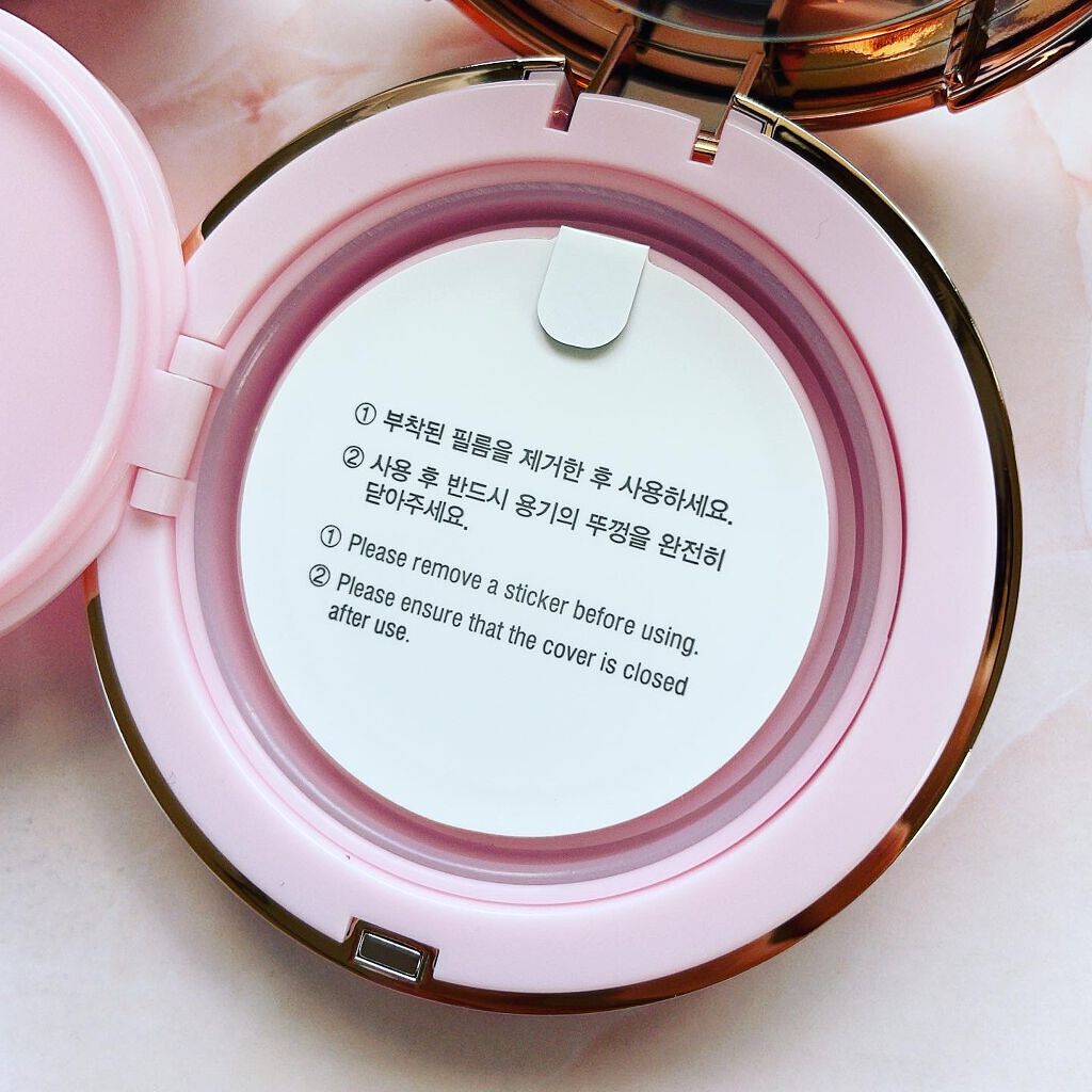 ファンデーションのケースと中身が別なのでまずは組み立てるところから。スポンジはクッションファンデによくある、薄手のスポンジです。ケースについている鏡にはシールが貼ってあったのでとって・・・。こんな感じ。(スワイプしてみてね)スポンジを手に、フ...