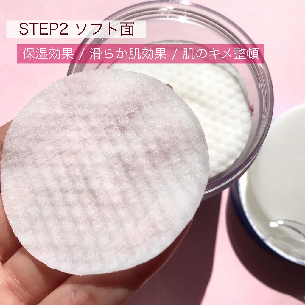 - 毛穴の汚れを拭き取り、肌を引き締めることで肌をなめらかに整える拭き取りパッドです。 しっとりしたエッセンスがたっぷり含まれ、肌のキメを整えつつ、自然なツヤ肌に仕上げます。 <使用方法> 洗顔後、パフのエンボシング面を使い、目と口周りを避けて顔全体を拭き取ります。 裏の軟らかい面を使い、もう一度拭き取りながら軽くパッティングしてください。