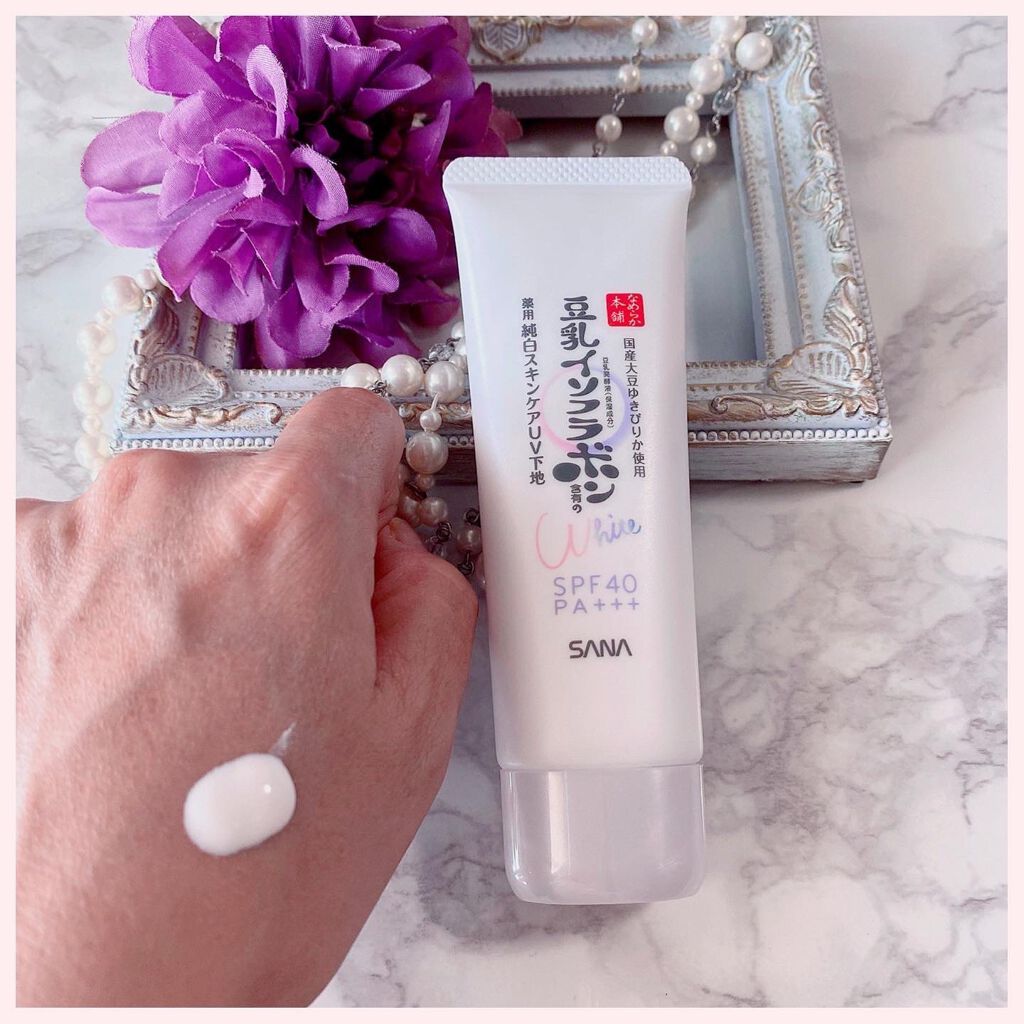 - <薬用美白スキンケアUV下地> 豆乳の美白スキンケアUV下地。肌荒れ&ニキビ予防しながら美白!メラニンの生成を抑え、シミ・そばかすを防ぎます。トーンアップ(メイク効果による)&皮脂崩れ防止。化粧水・美容液・乳液・クリーム・UVカット・化粧下地の1本6役。SPF40・PA+++。[販売名:サナ なめらか本舗 薬用美白スキンケアUV下地]