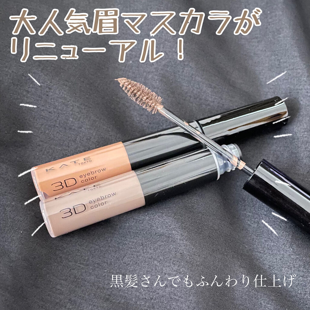 KATE 3DアイブロウカラーN BRー3 BRー7 3Dアイブロウカラーはリニューアル前のものを使ったことがありますが、カラバリが少なめで一番暗いBR-1でも黒髪の私には明るめでした…🤔 今回リニューアルされた3DアイブロウカラーNでは7色とカラバリが豊富! なかでもBRー7は黒髪さんにぴったりのお色! BRー3は今流行りのピンク系です☺️ リニューアル前のものと比べてつくし型だったブラシの毛足が均一に長くなり、地肌にベッタリつくことがなくなりました! 高発色で染まりやすいのはリニューアル前と同様! さらに繊細なパールが配合され自眉の暗さを抑えて垢抜け眉に! 眉マスカラにお悩みの方、ぜひぜひチェックしてみてください♪