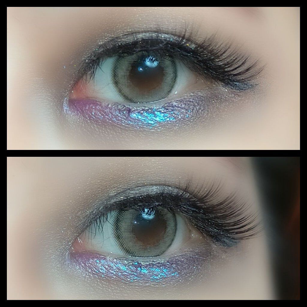 全部ラメ!キラキラ好き大歓喜のパレット😍😍😍 左下2色のグリッターはしっとりぺたぺたしている質感で瞼にしっかりくっついてくれます! ざっくり言うと上段はキラキラ中段はツヤツヤ下段はギラギラというイメージです。 全体的に色づきは控えめでラメ感を楽しめる🥳 全部キラッキラの宝石みたいな多色ラメですが、上段は青ラメ、中段はピンクラメ、下段はゴールドラメが目立つなーと思いました💖 名前も可愛い☁