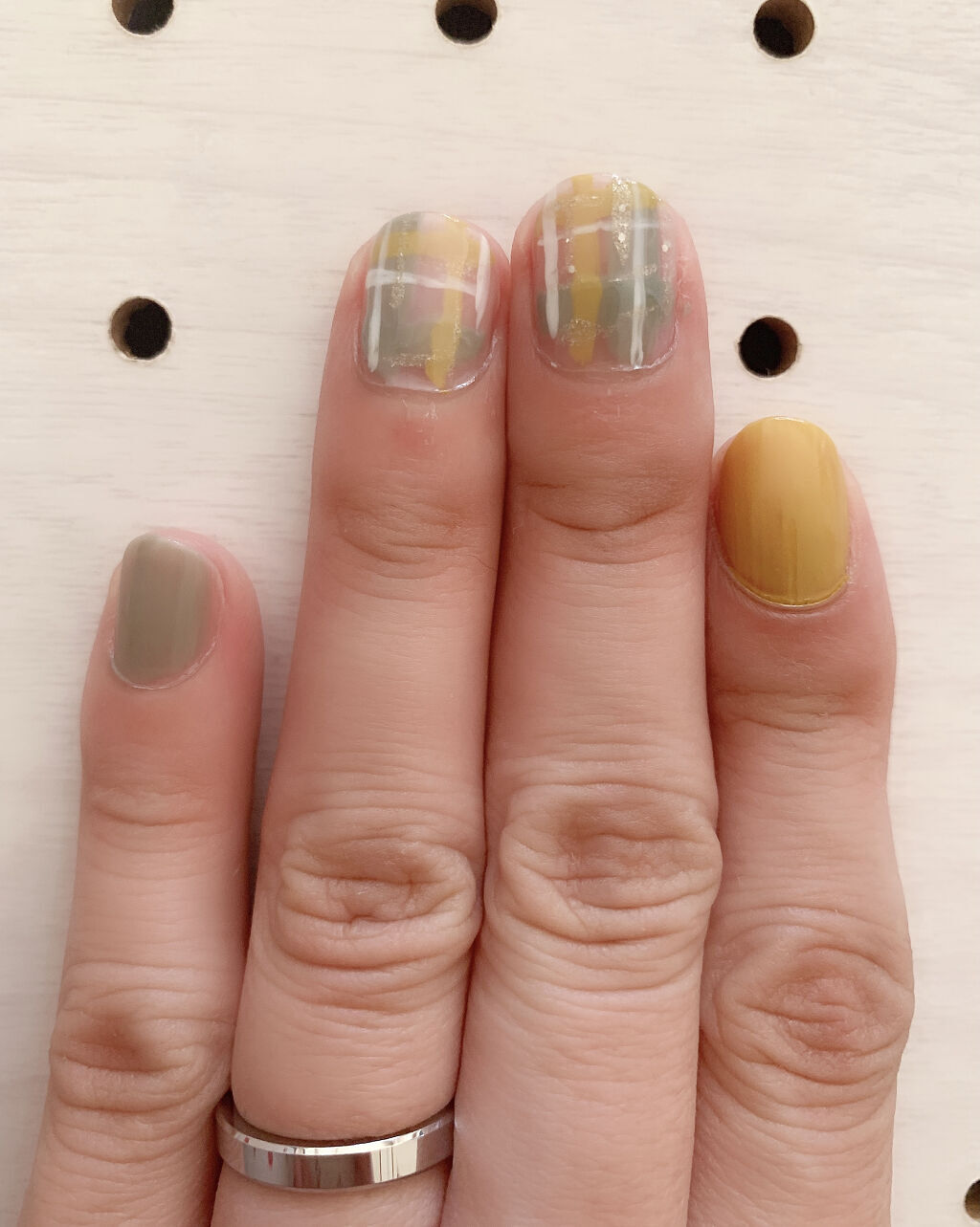 ハムちゃんネイルをしました🐹 早くしないと秋が終わりそうなので、CANMAKEの限定紅葉カラーと組み合わせた秋ネイルデザインです🍁🍂 N107 葉洩れ日は、ゴールドパールのキラメキが色味を引き立てるメタリックグリーン。N108 イチョウ並木は、コッパーラメを閉じ込めたメタリックイエロー。 ゴールデンハムスターのシールが、ノーマルちゃんとキンクマちゃんそれぞれ3種ずつ入っていたので、左右で違うカラーの子を使用♪