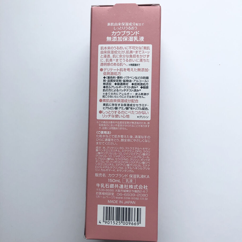 赤箱で有名な牛乳石鹸の会社から出ている「カウブランド無添加」のスキンケアシリーズ。 素肌由来保湿成分<セラミド、ヒアルロン酸、アミノ酸(グリシン)>配合✨ しっとりするのにべたつかない、リッチな使いごこち🫧