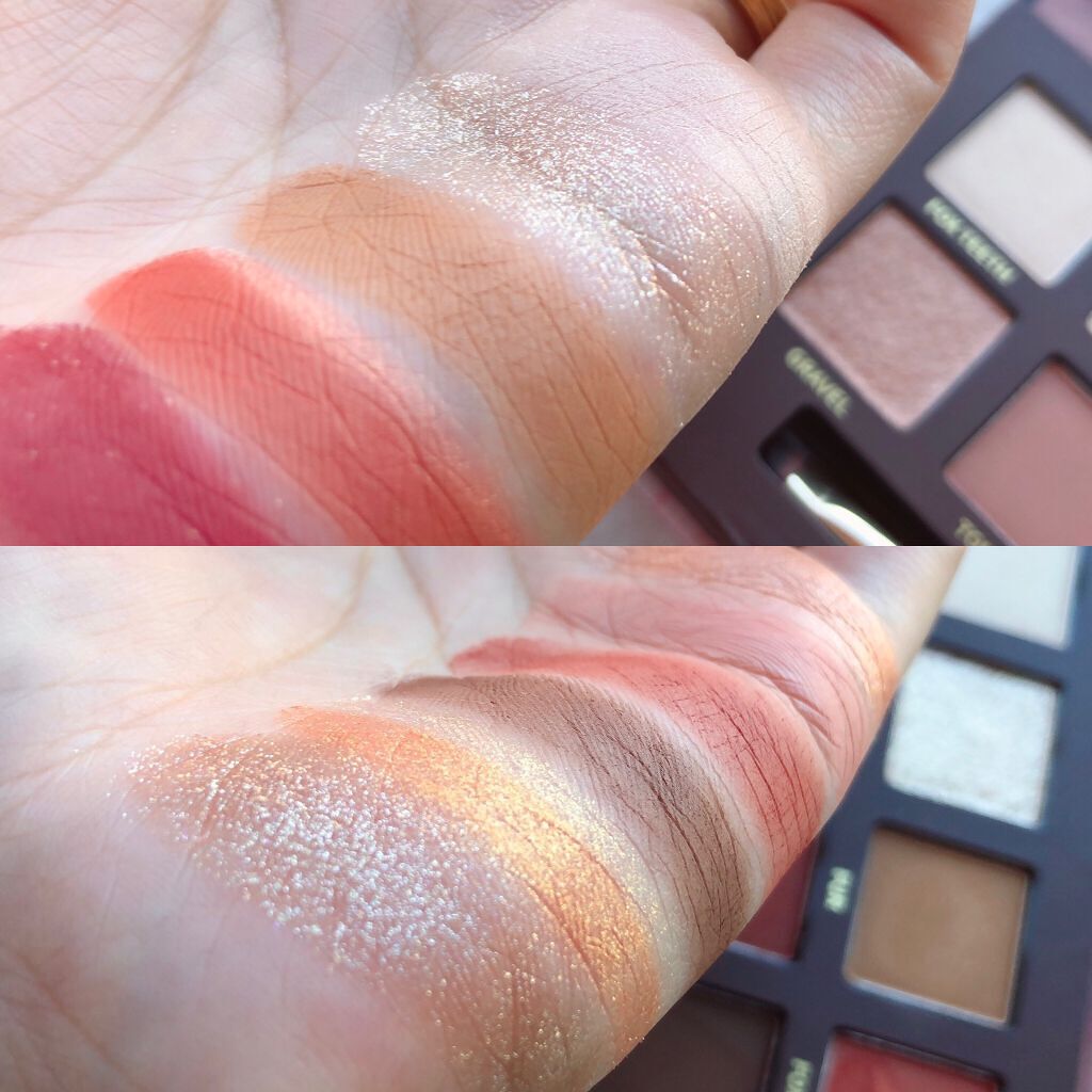 ベースメイクをパウダーファンデでなるべく薄めにしあげています。あまりにも粉っぽくベースを仕上げるとマットアイシャドウの付きが悪くなりそうな気がするので(なんとなく)…😅 パレット左上のベースカラーだけはアイシャドウブラシ(大)それ以外は(小)のブラシで塗っています! 涙袋の影は付属のブラシの細い方で。仕上げに涙袋に左上のベースカラーを少しのせると涙袋がふっくら見えてオススメです◎!