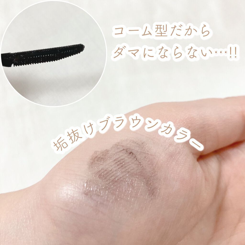 - ブラウンマスカラとしても使える、97%オイルケア成分の日中用カラーまつ毛美容液。ブラシはダマになりにくいコーム型。しっかりとかしあげることで、キレイな上向きカールが作れます。カールキープ力のあるウォータープルーフなのに、お湯での簡単オフがOK! メイクしながらまつげケアが叶います。