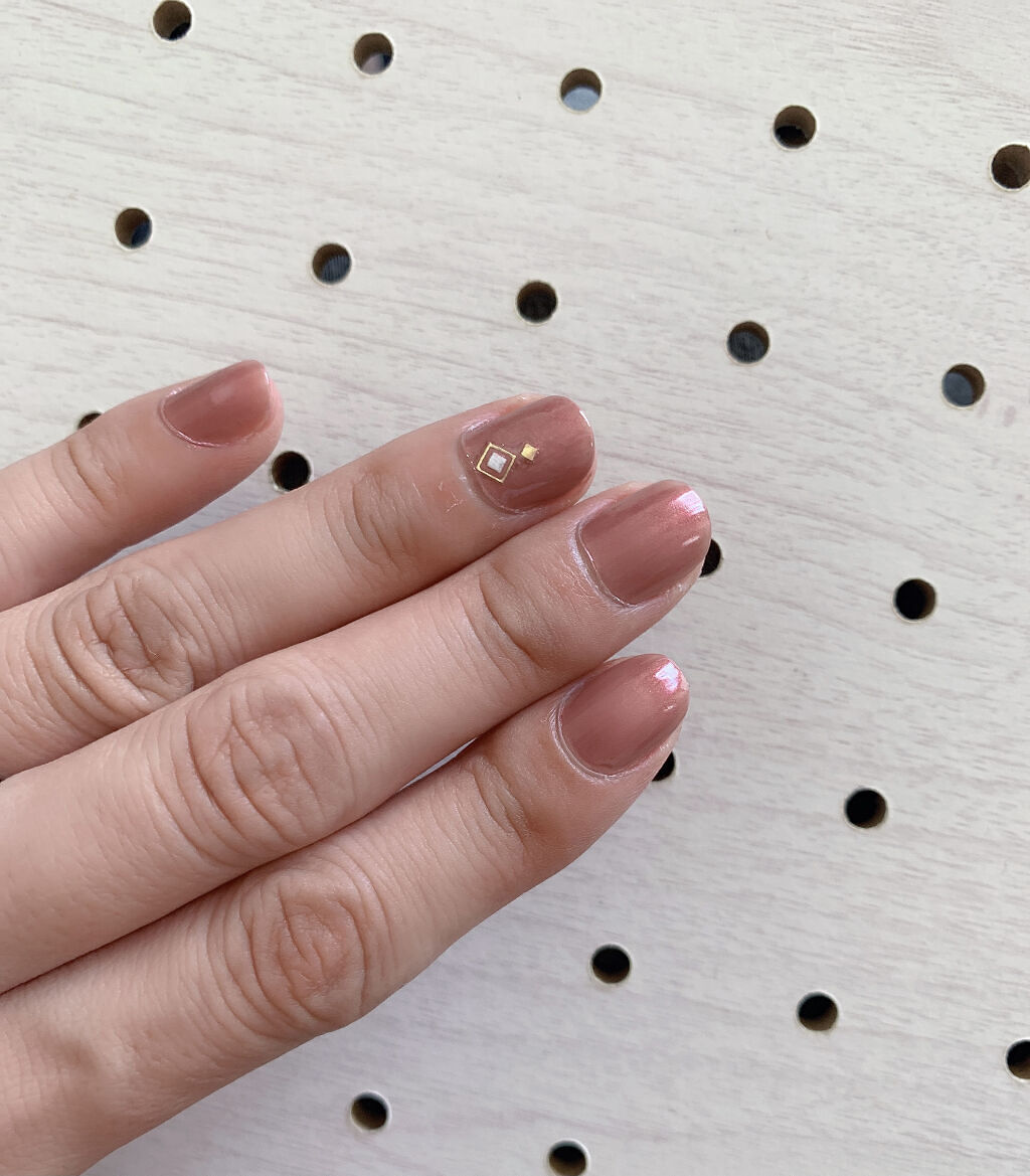 指先が綺麗に見えて手が映えるセルフネイル!!!シンプルでナチュラルなので、派手なネイルが出来ないお仕事の方にもおすすめです💅 自爪風だけどツヤもあって、まさに爪のファンデーション!!これ1つで仕上げればよりナチュラルで、パッと見だとネイルしてるかわからないぐらいなのでネイル出来ない学生さんでも大丈夫かも? キラッキラのゴールドラメがたっぷり入ったカラー。どんなカラーのネイルにも合うし、1つ持ってれば色々使える!!
