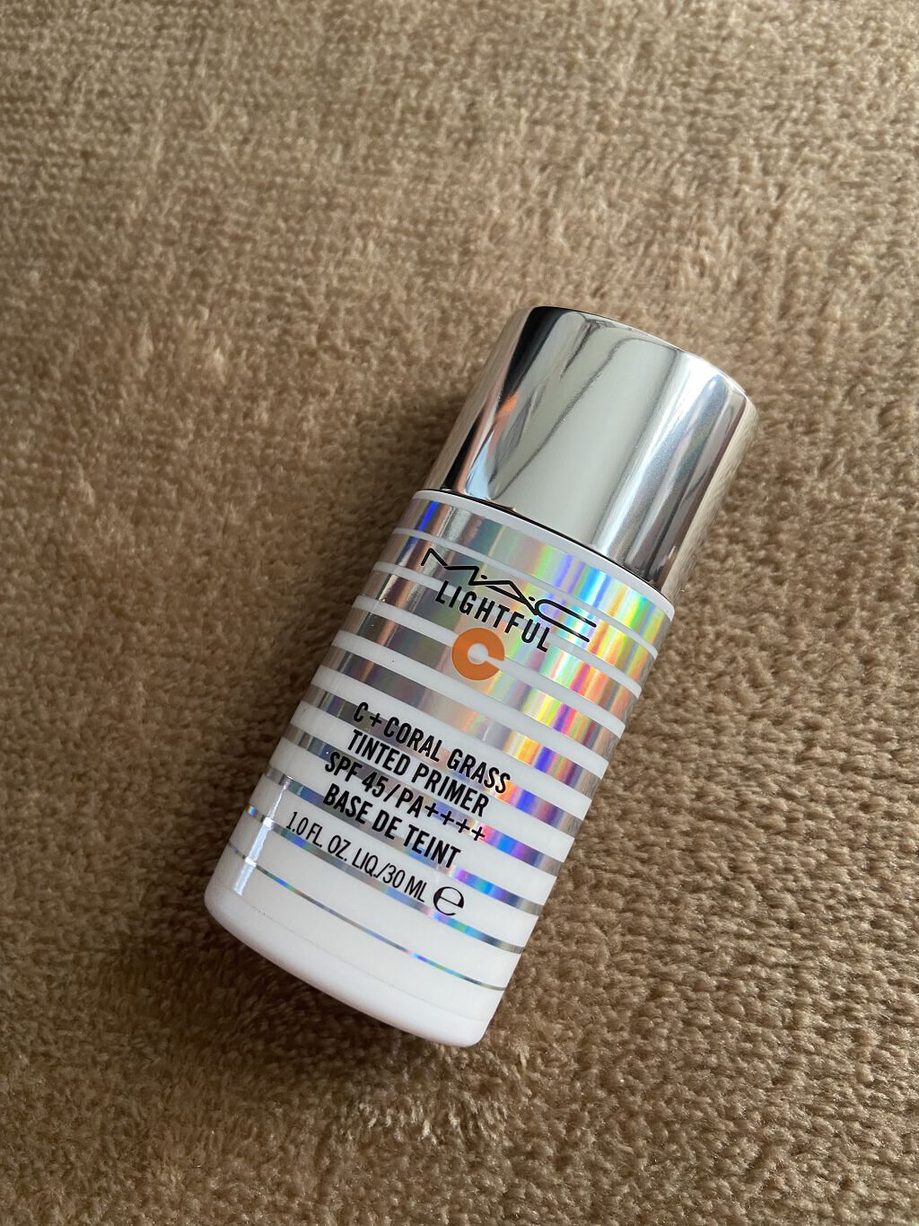 保湿感・ツヤ感・密着感◎ 【M・A・C/ライトフル C+ティンティッド プライマーSPF45】 緩めのテクスチャーで伸びが良いです◎ SPF45/PA+++++で紫外線対策もできてオススメ👾 保湿感があり、乾燥を感じにくくてお気に入り🫶🏻 ツヤ感が出て綺麗な仕上がりイメージ