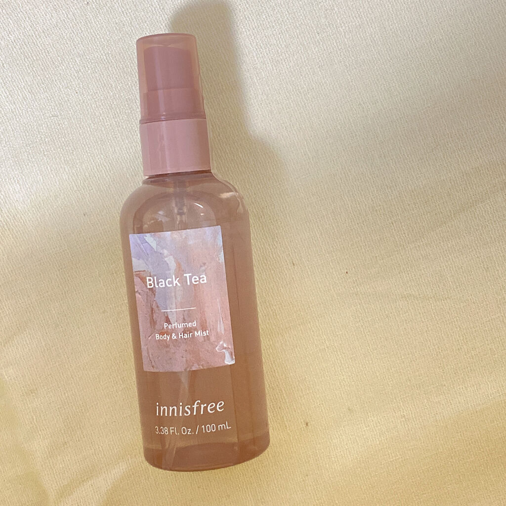 innisfreeのパフュームドボディ&ヘアミストブラックティーを購入しました!ボトルを直接嗅ぐとThe紅茶!って感じでした笑腕に着けてみるとスーッとした感じでスッキリした香りでした!秋っぽい!なんか身に覚えのある香り笑笑シャンプーでありそう...