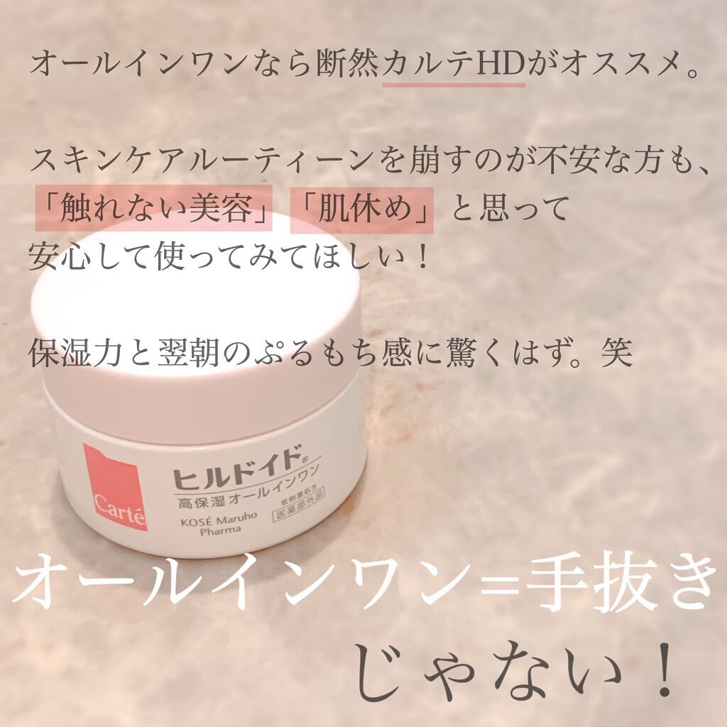 - 【高保湿オールインワンゲル】 コーセーとマルホの合弁会社コーセーマルホファーマから発売された「カルテHD」。マルホから唯一供給を受けた「ヘパリン類似物質HD」を配合。1品4役(化粧水・美容液・乳液・クリーム)の働きを兼ね備えた高保湿オールインワンゲル。 これ1品で、うるおいを抱え込める肌に整えます。ゲルらしくみずみずしい感触を維持しながらも、エモリエントオイルとワセリンを絶妙なバランスで配合することで保湿効果の高さとなじみの良さを両立しました。化粧水のみずみずしさ、美容液の濃縮感、乳液の柔軟性、クリームの密封力を一品に集約した気持ちの良い使い心地です。 <販売名:HDゲル>