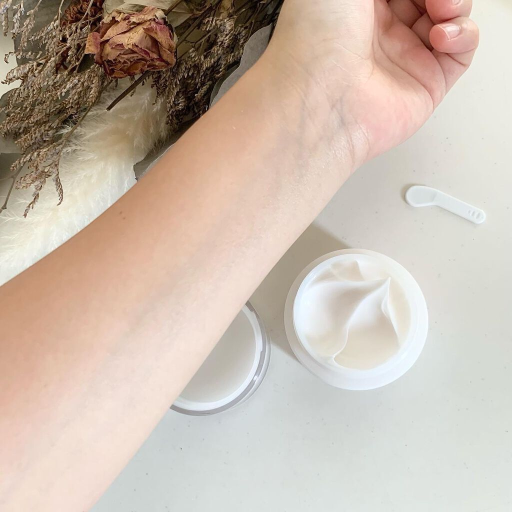 綺麗な白色のふわっと柔らかなテクスチャーです。 伸びがとても良くて首までしっかりつけれます。 とてもみずみずしさを感じるクリームです。 塗った後は、お肌が柔らかくなり、長時間うるおいを感じます。 乾燥による目尻や口元の小じわ、ほうれい線や首のケアなどとても使いやすかったです。 これからの乾燥する季節にもとても使いやすいなと感じました🧸