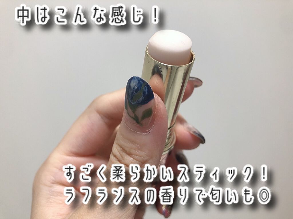 お直し用のスティック美容液💄 うるおい成分配合で気になる箇所に直塗りできて、バラエティショップで販売中✨ 携帯しやすいサイズで見た目も可愛らしい♥ 香りはラ・フランス🍐 薄ピンク色ですが、伸ばすとクリアカラー スルスル伸ばすことができ、肌なじみがとてもいい👌 鼻をよくかむので鼻の下メインに使っていますが、いい香りで癒される🍐✨ しっとり感あるけどベタベタ感はなく、使い心地◎ 真夏の季節の私の油田肌だとメイク崩れが元々酷いのでこれだけだと難しいですが、秋シーズンによさそう👀💡 大好きなラ・フランスの香りがするアイテム🍐💕 持ち運びに便利で直塗りした後ポンポン馴染ませるだけ✨ 使いやすいし、癒される香り😊 ハイライトとして仕込むのにもいいと思います!