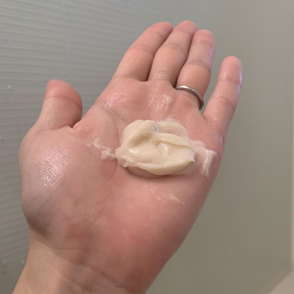こちらは、うねり髪にフォーカスしたトリートメントなんだそう☺️ 実際に手にとってみると白く少しこっくりとしたテクスチャー😊 植物のようないい香りがします✨ 個人的に香りがとっても好みでいい香りに包まれながら洗えたのでテンションがあがりました😆