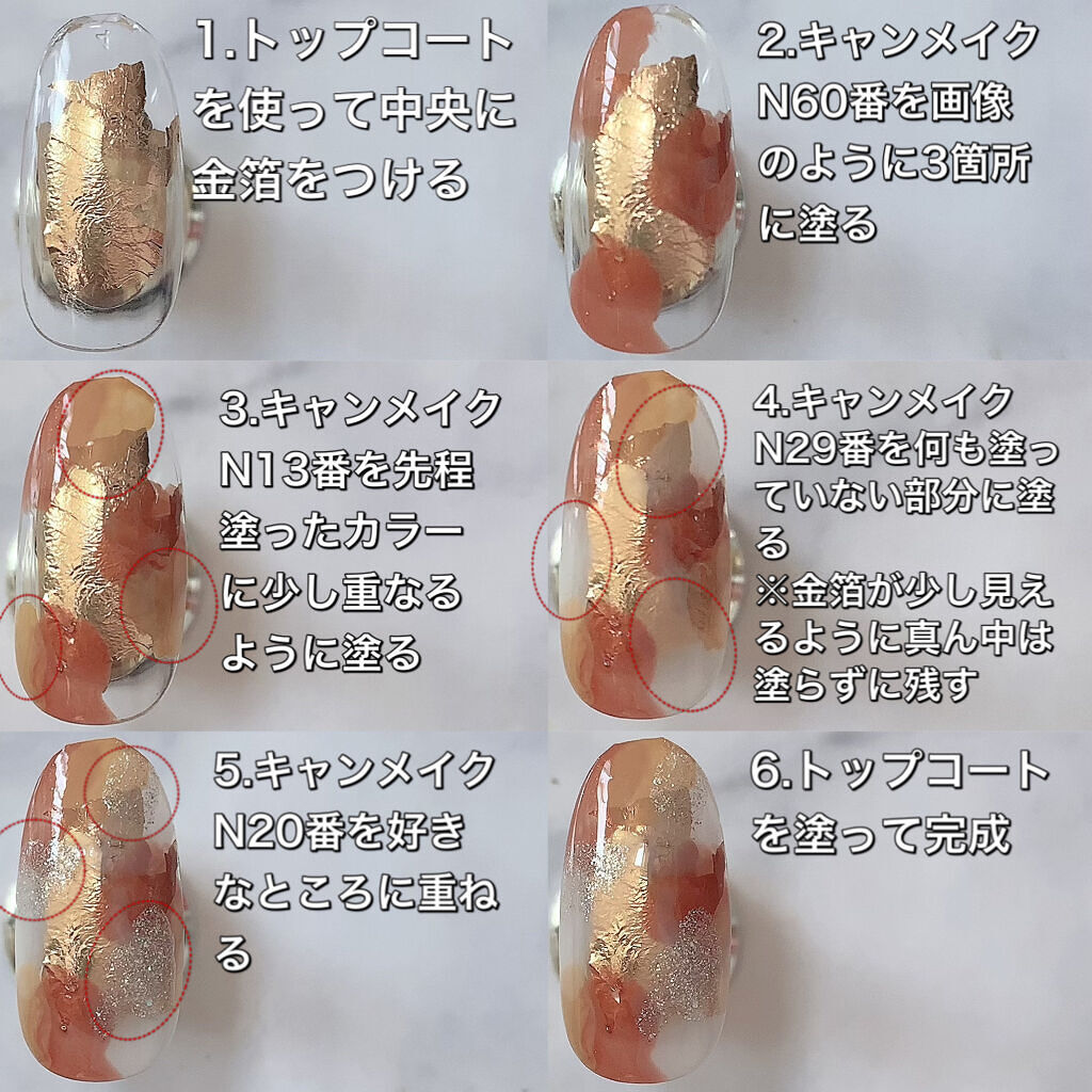 こんにちわ♡今回はキャンメイクのマニキュア2色で出来る、簡単グラデネイルのご紹介です💕先端にかけて白くなるベイビーブーマーは、美爪に見えるのでグラデの中でもとても人気デザインですよね(*´꒳`*)やり方は画像を参考にしていただければと思います...