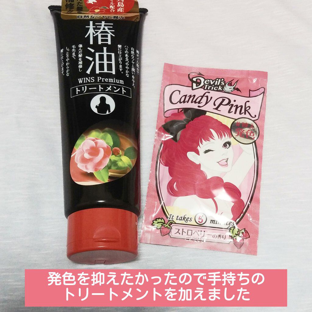 - 傷んだ髪ほどよく染まるヘアカラートリートメントで、“常色"はずれの映え発色! 素手で簡単5分、イオンカラーでツヤさら髪色チェンジ! 約1週間でもとの髪色に戻るから、流行カラーも気軽に試せます。 カラー剤とは思えないフルーツなどの香りで、カラーリング中も楽しめます♪ ※仕上がりの色は元の髪色・傷み具合・髪質によって個人差があります。 ※健康毛や暗い髪・白髪には発色しないことがあります。 <Devil’s 魔法の秘密> ①5分で髪色チェンジ!簡単+イオンカラー® イオン化した+の色素を傷んだ髪に多い-のイオンとくっつけるから発色キレイ♪ 素手でOK! シャンプーすれば1weekで魔法がとけて元通り! ②傷みを集中ケア★ツヤさら髪に変身 保湿成分「ホホバ種子油」「ツバキ種子油」配合で髪にたっぷり潤い満タン。驚きのツヤ髪に! ※頭皮につけないようにご注意ください。 ※素手で塗布したあとはすぐに石けんで手を洗ってください。