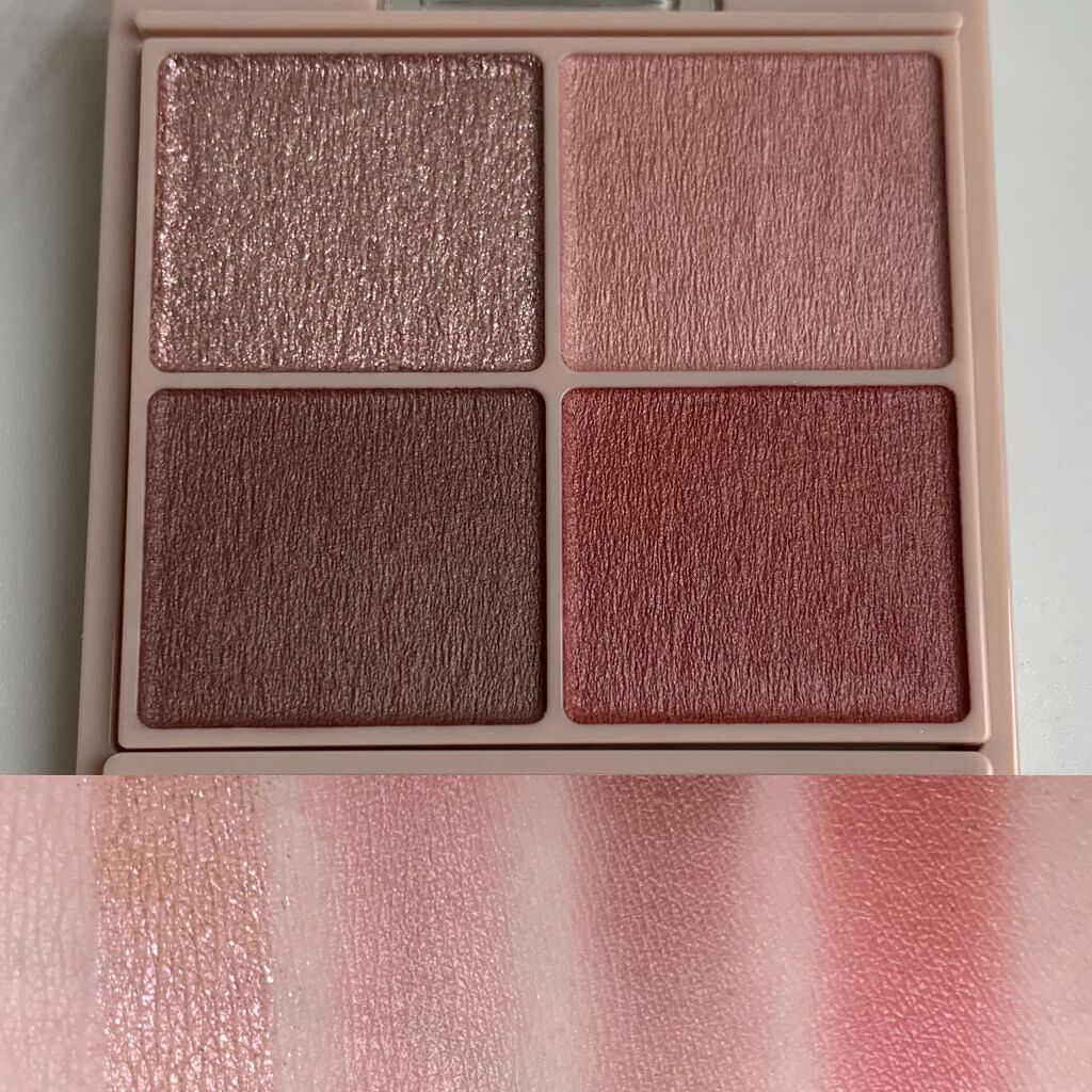 - シルキースフレアイズの姉妹品♡ 肌に溶け込むような透けマットシャドウ 透け感のある柔らかい仕上がりになるマット3色と、透け発色の繊細ラメ1色のパレットシャドウ♡ 完全マットアイや、ラメ×マットアイなど、メイクのパターンを楽しみましょう!