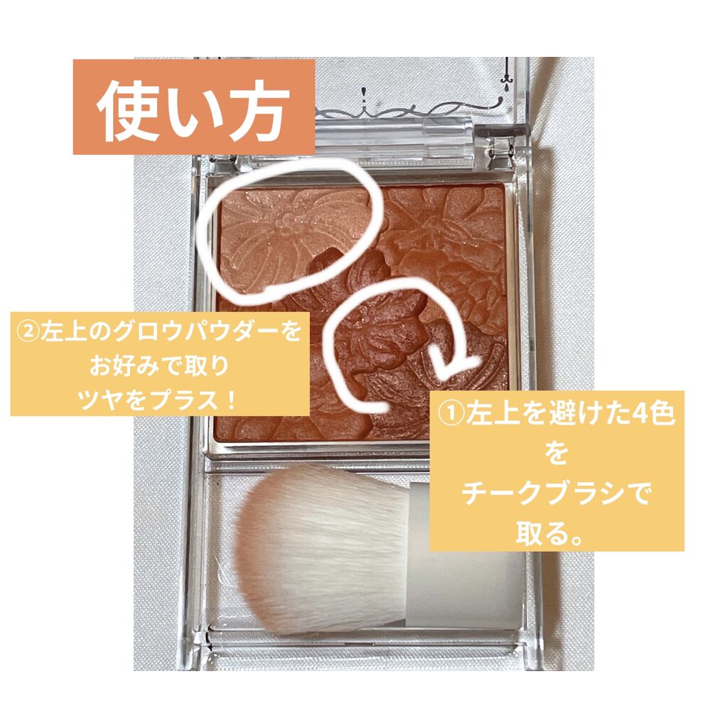 見た目がハート型で可愛いのに 粉質はしっとり付属のブラシもチクチクせず塗布できて660円はすごい🌸 透け感のあるツヤ仕上がりで P04はハイライトとして使うのも◎ 全部色味の違うピンクカラーでその日の気分やメイクに合わせて使い分けてる🌷