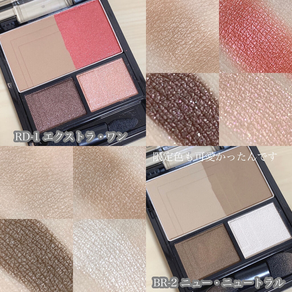 - 肌影カラーを眉下に広く入れて隠れた立体感を掘り起こす骨格陰影アイシャドウ。 見たまま発色で肌なじみのいい、軽いつけ心地の乾式(肌影カラー・立体感カラー)とツヤ・ラメ感の輝きを美しく引き立たせる湿式(ダークカラー・3Dハイライト)の2つの製法を組み合わせ、マット~パールまで4つの質感をセット。 <眉・シェーディング・ハイライト>のポイント使いにもおすすめ! ※RD-1、BR-2はマツモトキヨシ・数量限定