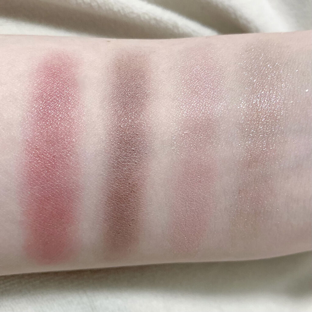 - シルキースフレアイズの姉妹品♡ 肌に溶け込むような透けマットシャドウ 透け感のある柔らかい仕上がりになるマット3色と、透け発色の繊細ラメ1色のパレットシャドウ♡ 完全マットアイや、ラメ×マットアイなど、メイクのパターンを楽しみましょう!
