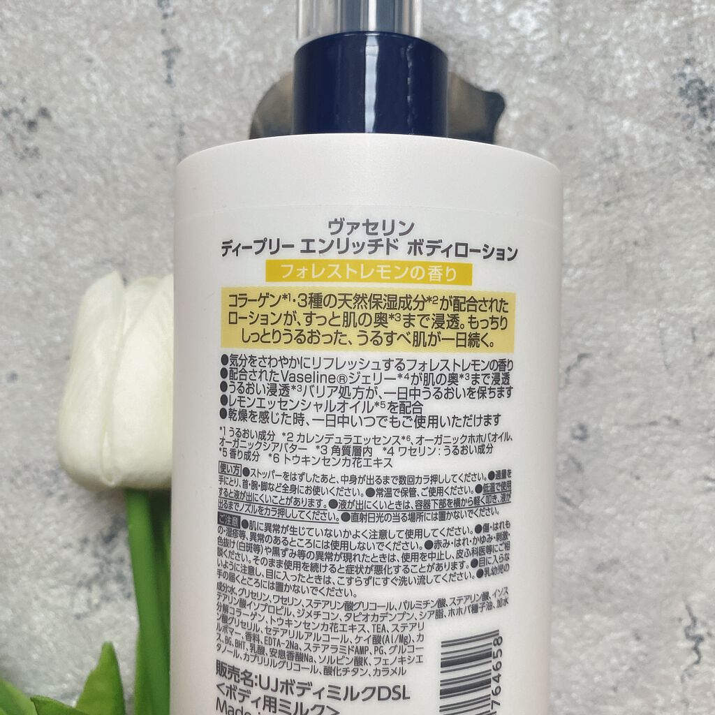 【使った商品】ヴァセリンディープリーエンリッチドボディローションフォレストレモンの香り ¥990【商品の特徴】💛うるおいをしっかり閉じ込める高保湿ボディローション。ふんわり優しく爽やかに香ってリフレッシュできるフォレストレモンの香り。コラーゲ...