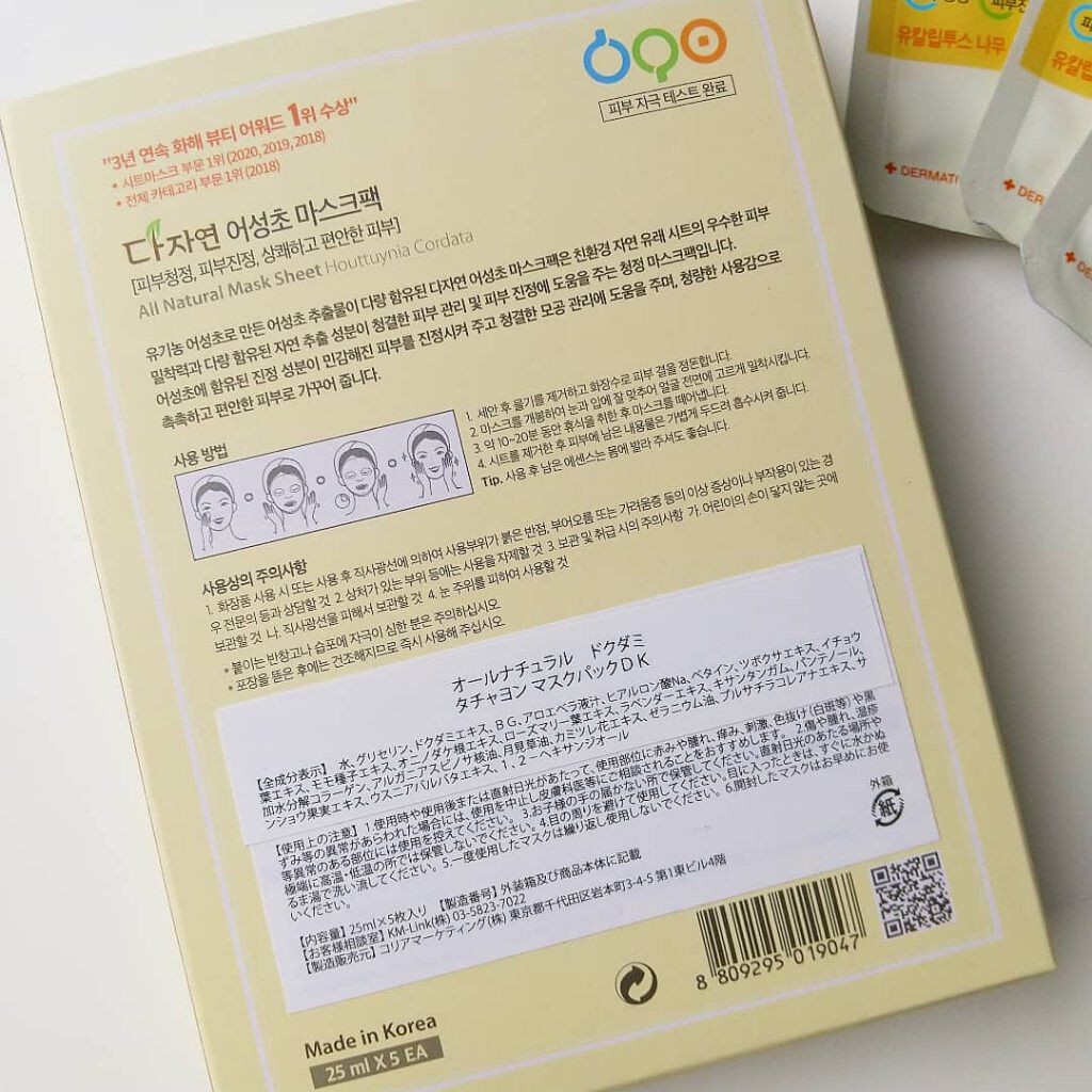 ドクダミエキス➡️肌荒れ防止・キメを整える 高分子ヒアルロン酸➡️保水力が高くバリア機能高める ノンコメドジェニックテスト 7つの有害化学物質 無添加 刺激テスト 完了 固めのシートで大きめサイズ 余っていた液の量はちょうどよく首まで保湿できる笑