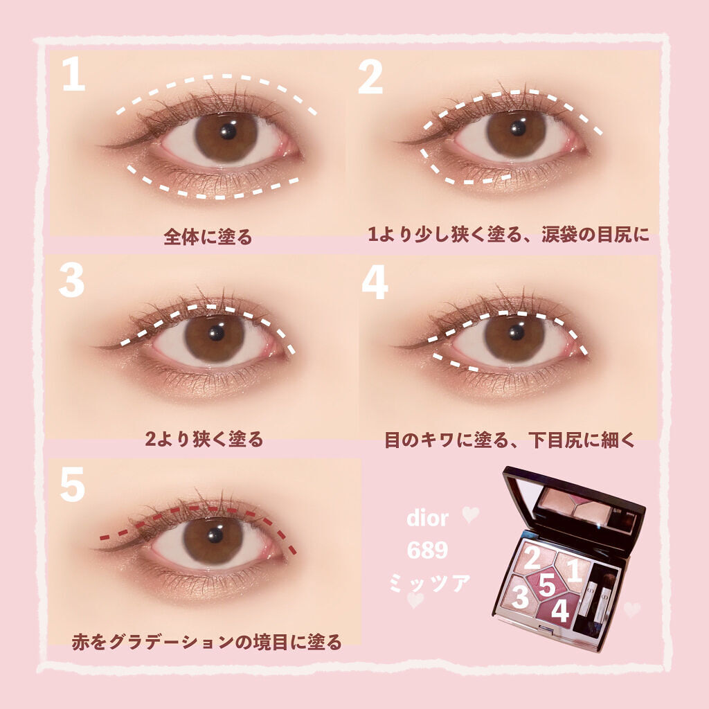 アイシャドウをどう塗ったらいいかわからない人、 何色も重ねると目元がくすんでしまう人におすすめです! 普通のアイメイクに飽きてしまった人や、 離れ目を解消したい人、丸目になりたい人など 目の形に悩みがある人におすすめです! 多色パレットをどう使ったらいいかわからない人、 グラデーションを楽しみたい人におすすめです!